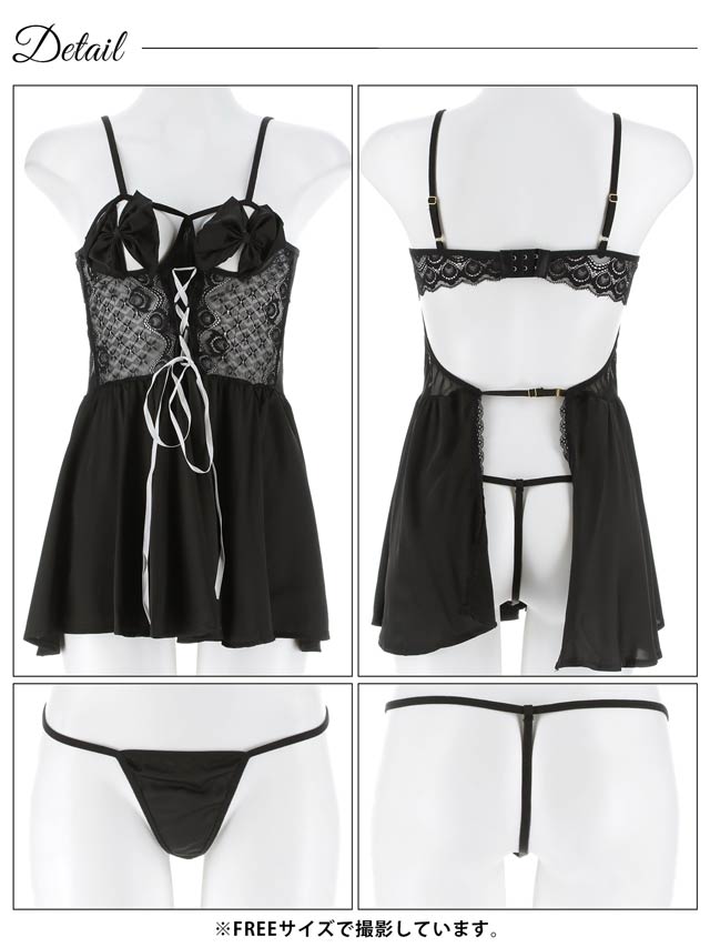 [CARRIEFRANCA]ストリングバッグカットレースベビードール