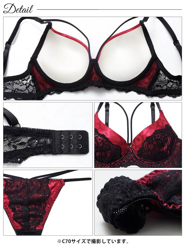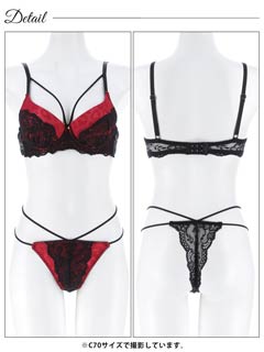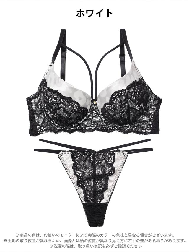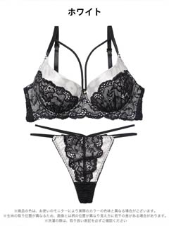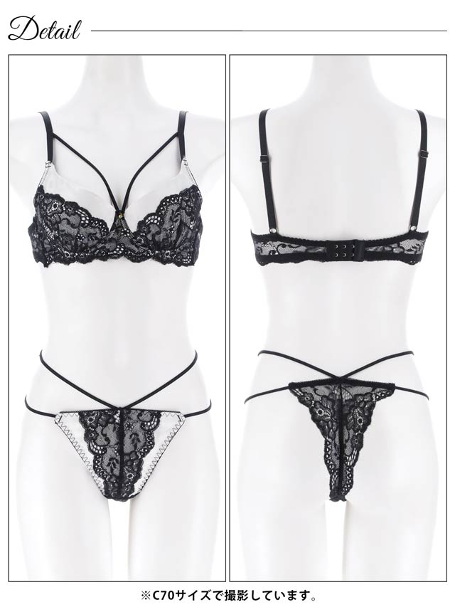 オールレースカットストリング育乳脇高ブラジャー&バック透けフルバックショーツ