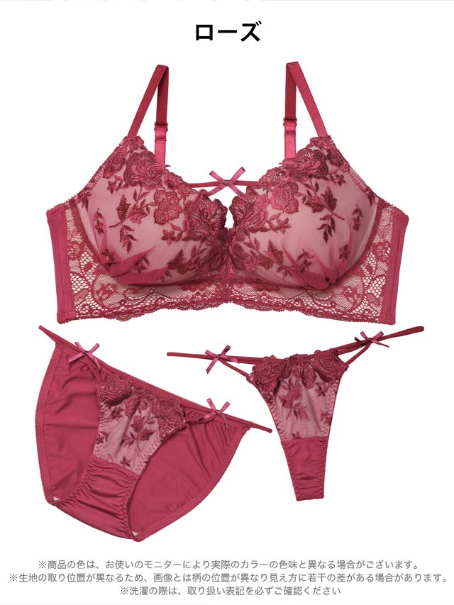 12/24新作!【3点セット】【EFサイズ】ディープローズリボンコード育乳脇高ブラジャー&フルバック&Tバックショーツ[大人気]