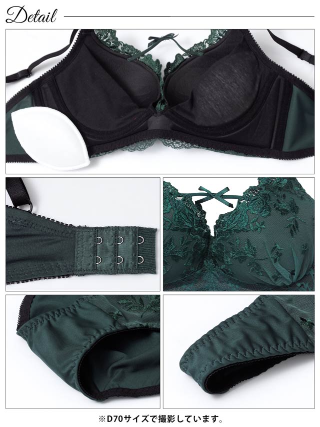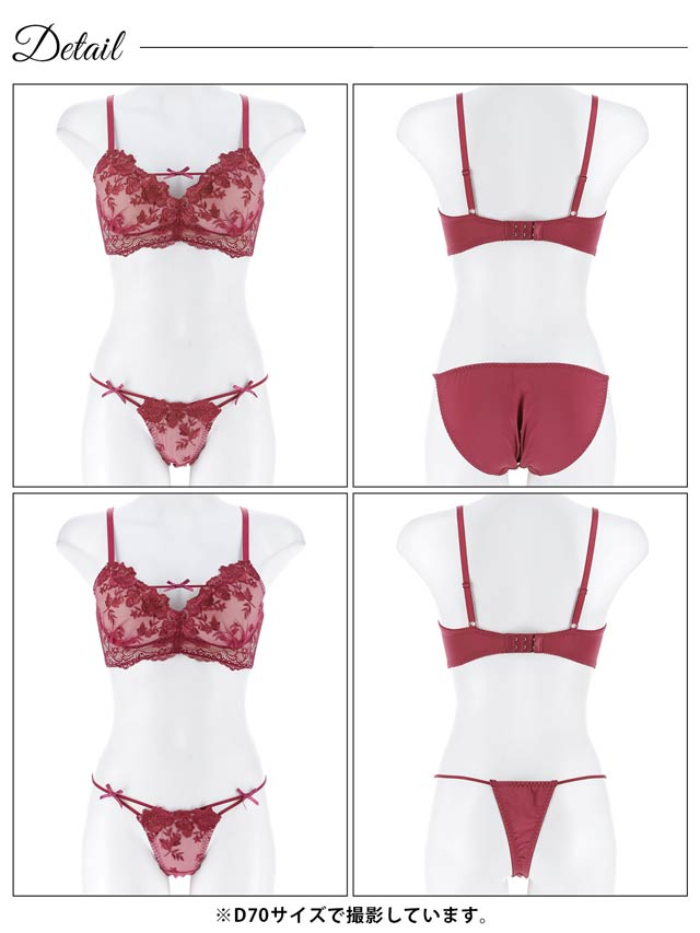 フロレゾンローズレース育乳脇高ブラジャー&サイド紐バック透けフルバックショーツ