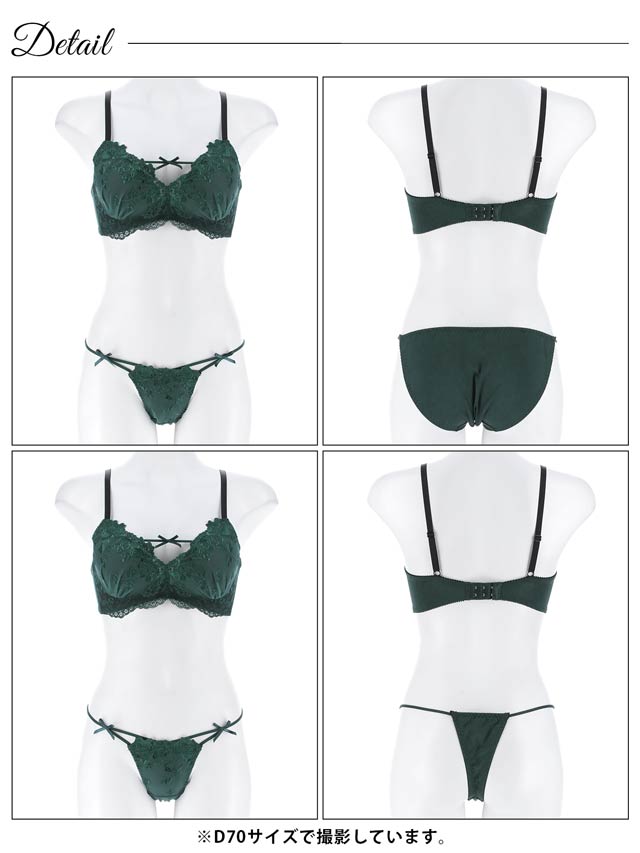オールレースカットストリング育乳脇高ブラジャー&バック透けフルバックショーツ