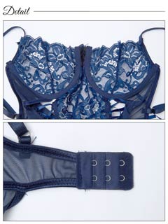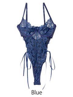 フロレゾンローズレース育乳脇高ブラジャー&サイド紐バック透けフルバックショーツ