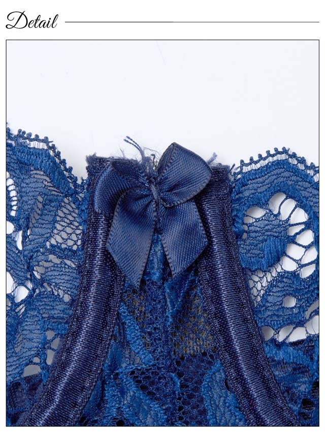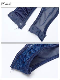 オールレースカットストリング育乳脇高ブラジャー&バック透けフルバックショーツ