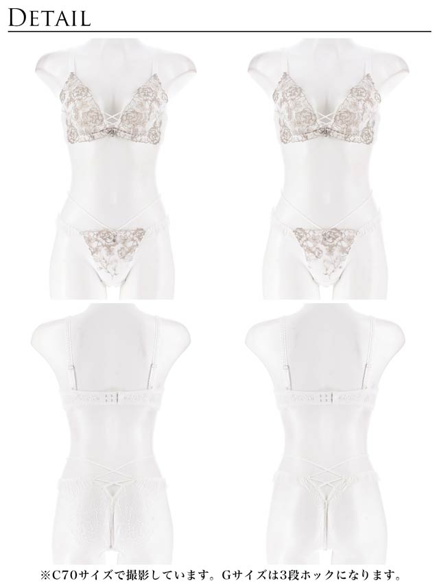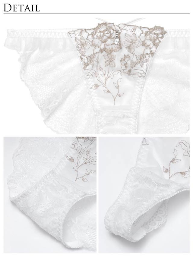 ダスティブルームエンブロイダリー育乳脇高ブラジャー&バック透けフルバックショーツ