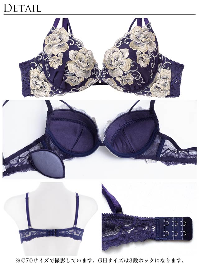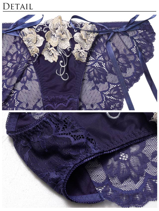 ダスティブルームエンブロイダリー育乳脇高ブラジャー&バック透けフルバックショーツ