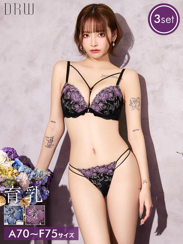 12/3新作!【3点セット】グロリアスブルームコード育乳脇高ブラジャー&フルバック&Tバックショーツ[大人気]