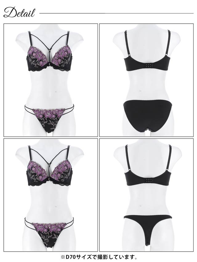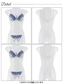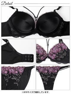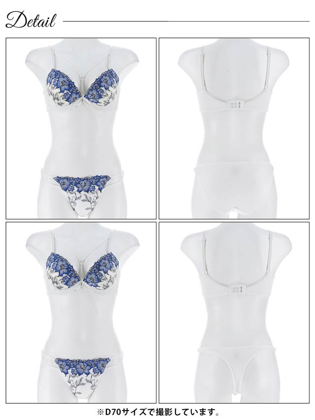ダスティブルームエンブロイダリー育乳脇高ブラジャー&バック透けフルバックショーツ
