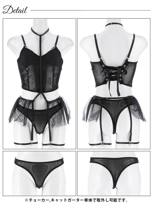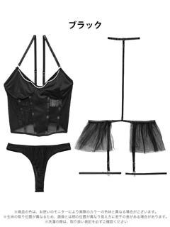 12/4再販!【4点セット】ダークレースアップビジューベビードール