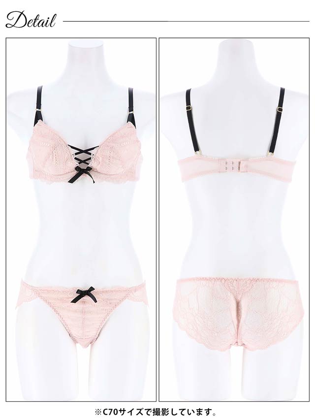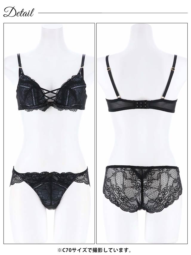 12/4再販!スモーキーレースアップブラジャー&バック透けフルバックショーツ[大人気]