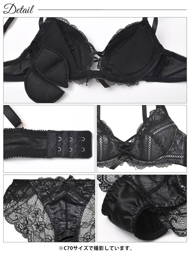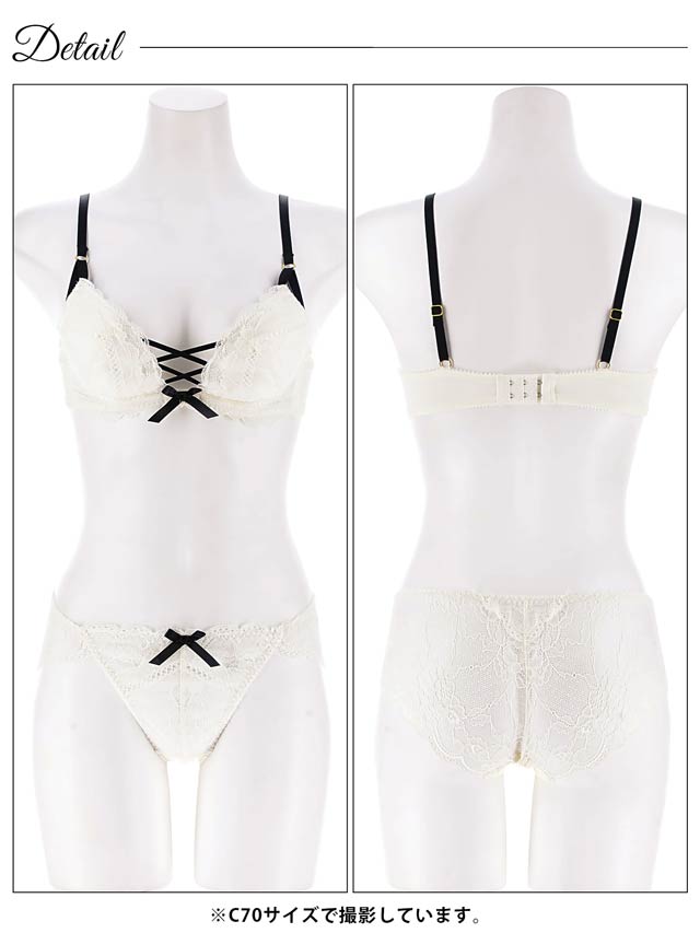 オールレースカットストリング育乳脇高ブラジャー&バック透けフルバックショーツ