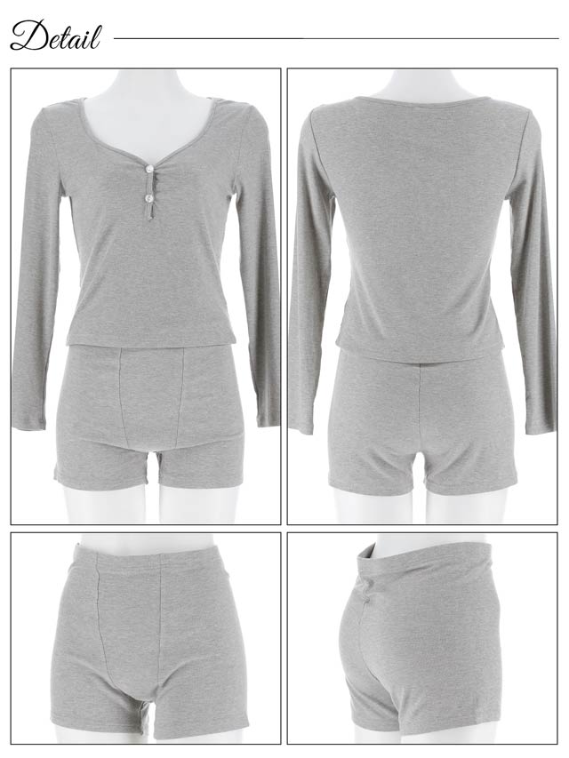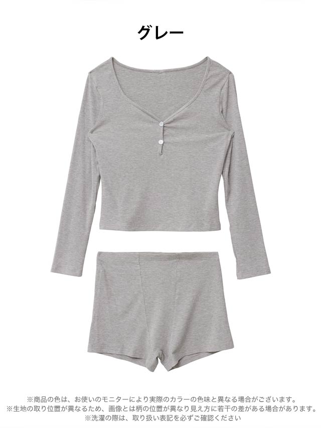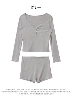 12/4再販!Vネックボタンリブ長袖トップス&ショートパンツルームウェア