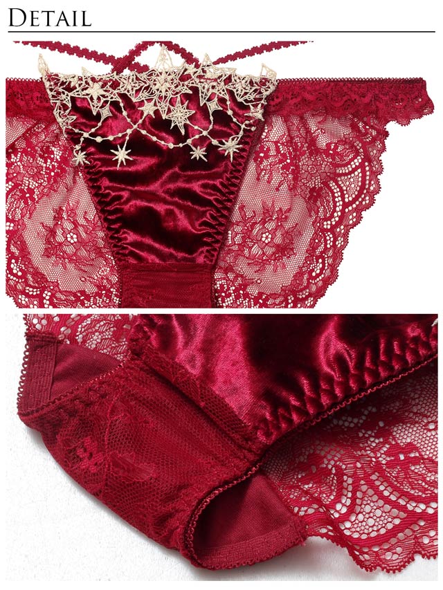 オールレースカットストリング育乳脇高ブラジャー&バック透けフルバックショーツ