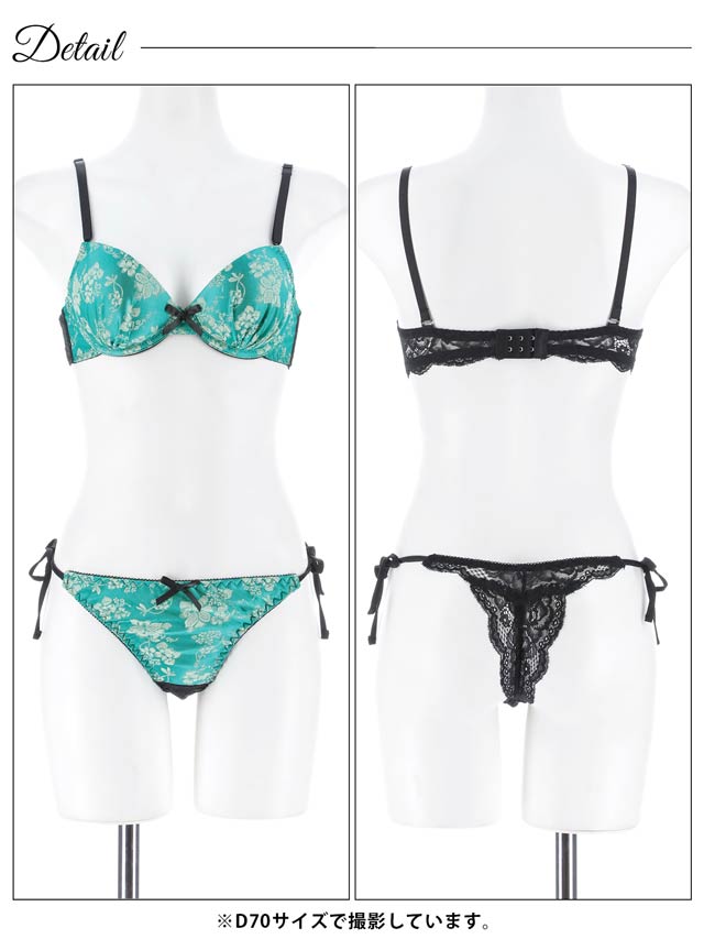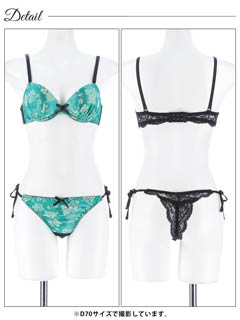 12/5新作!【かとゆり着用】ビビットヴィンテージボタニカルブラジャー&サイド紐バック透けフルバックショーツ[激売れ]