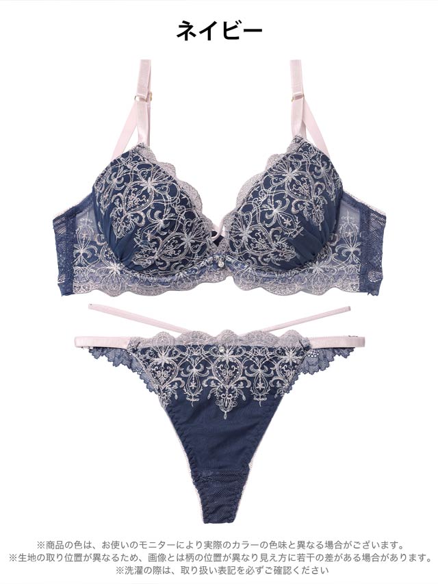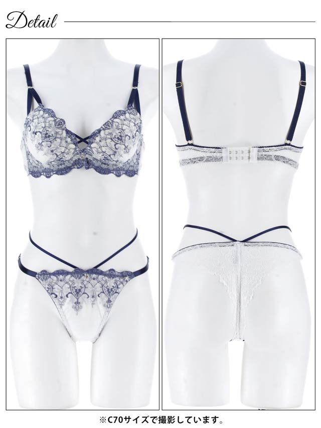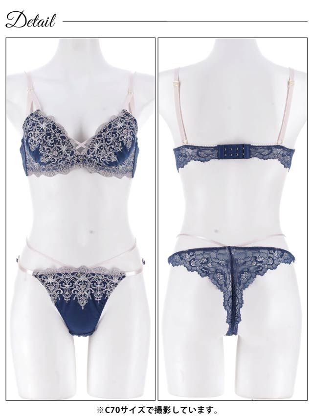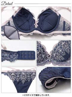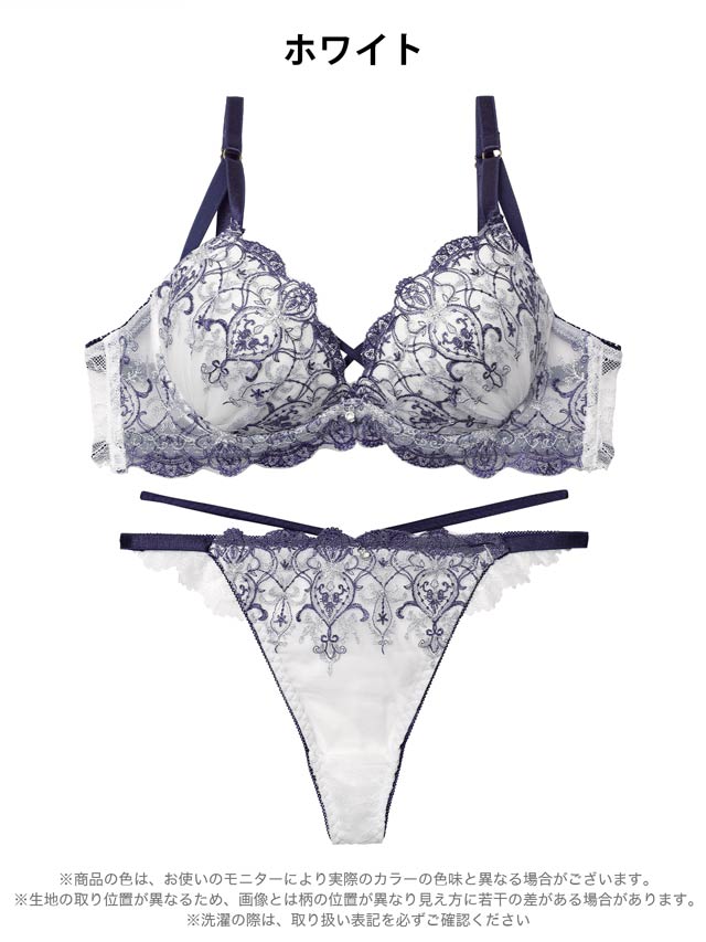 ダスティブルームエンブロイダリー育乳脇高ブラジャー&バック透けフルバックショーツ