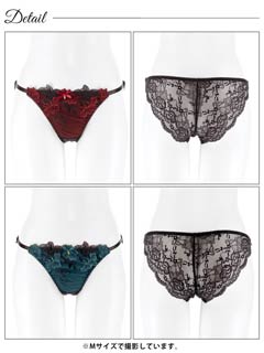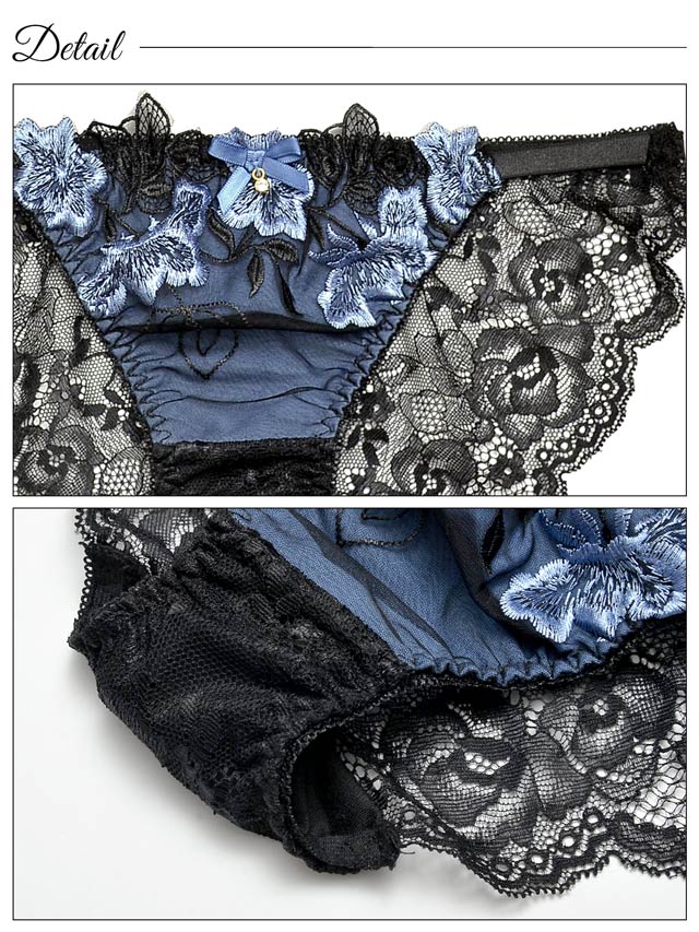 【Gi la see】大判ローズ刺繍ブラジャー&バック透けフルバックショーツ