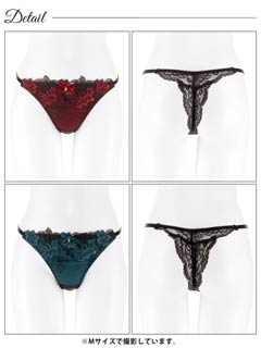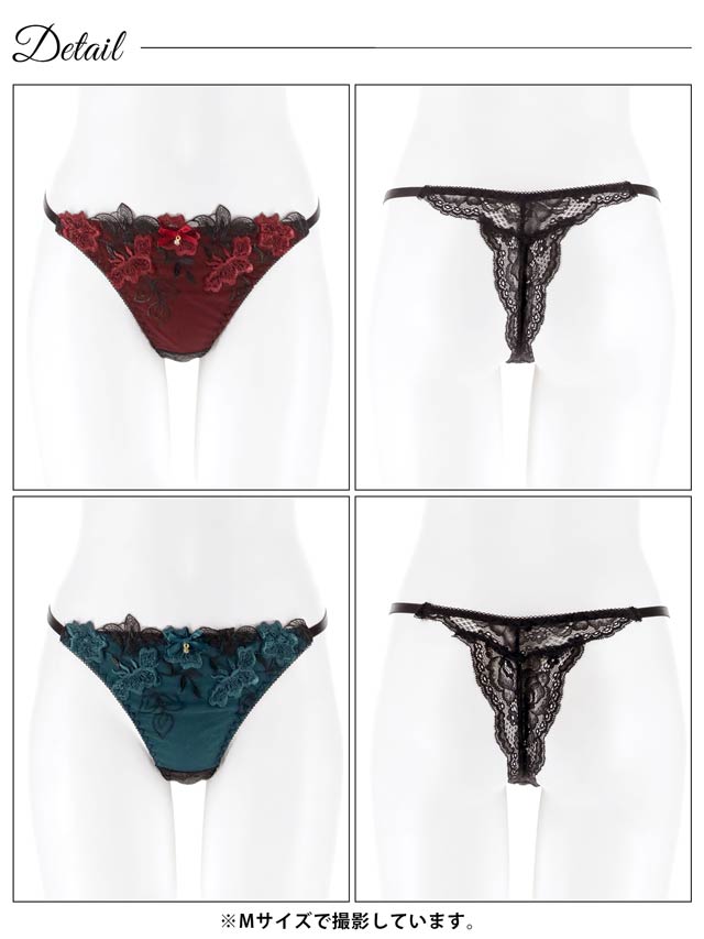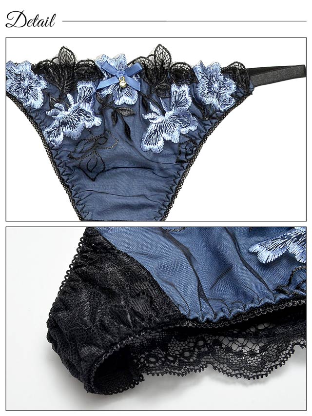 【Gi la see】大判ローズ刺繍ブラジャー&バック透けフルバックショーツ