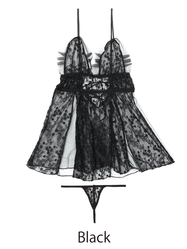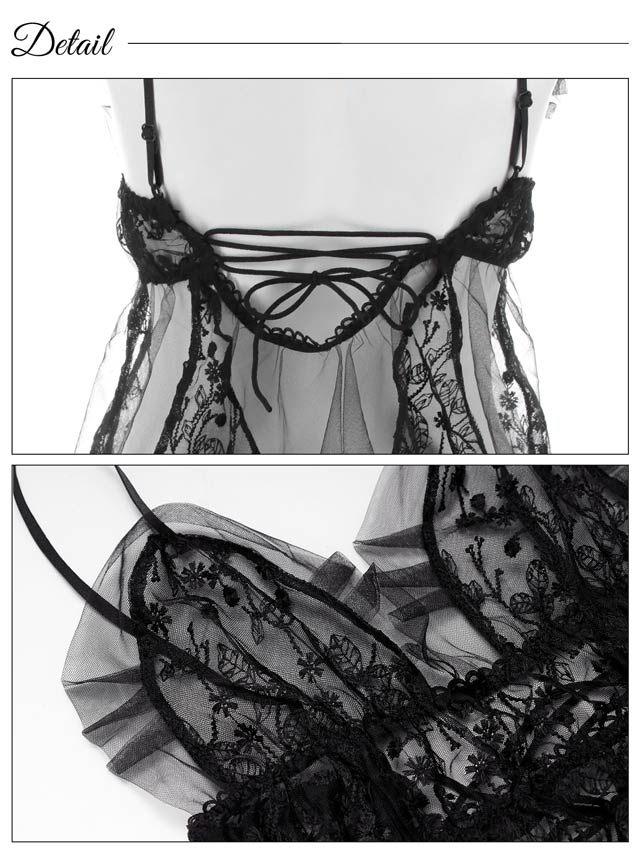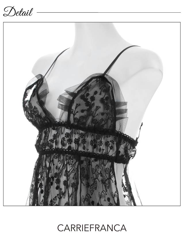 透け感のあるシアーレースにフラワー刺繍をあしらった、軽やかでセクシーなベビードール。