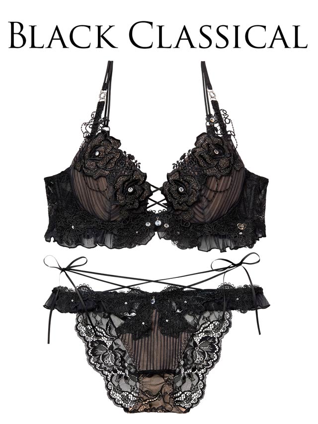 ロマンティックベルローズ育乳脇高ブラジャー&バック透けフルバックショーツ