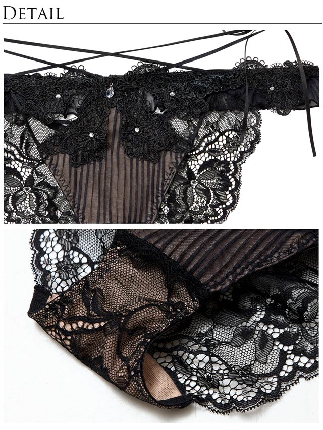 オールレースカットストリング育乳脇高ブラジャー&バック透けフルバックショーツ
