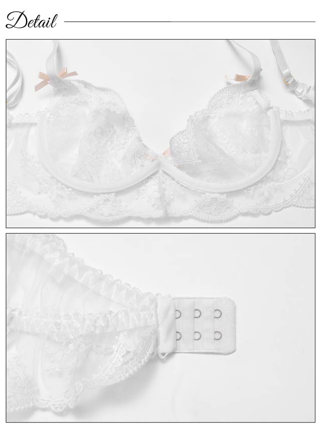 ダスティブルームエンブロイダリー育乳脇高ブラジャー&バック透けフルバックショーツ