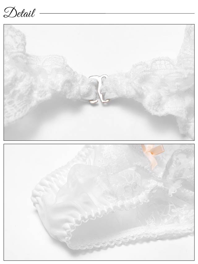 オールレースカットストリング育乳脇高ブラジャー&バック透けフルバックショーツ