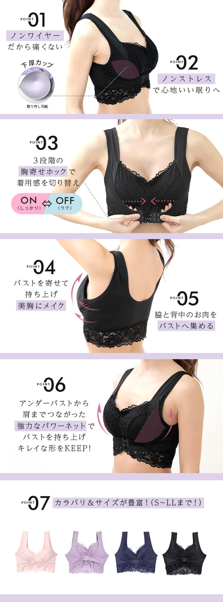4/3再販!【ノンワイヤー】フロントホック付きドリーミーナイトブラ単品