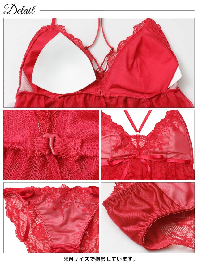 ガーリーフリルレーシィコード育乳脇高ブラジャー&バック透けフルバックショーツ