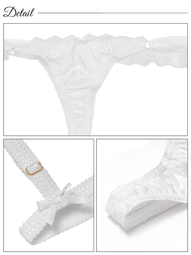オールレースカットストリング育乳脇高ブラジャー&バック透けフルバックショーツ