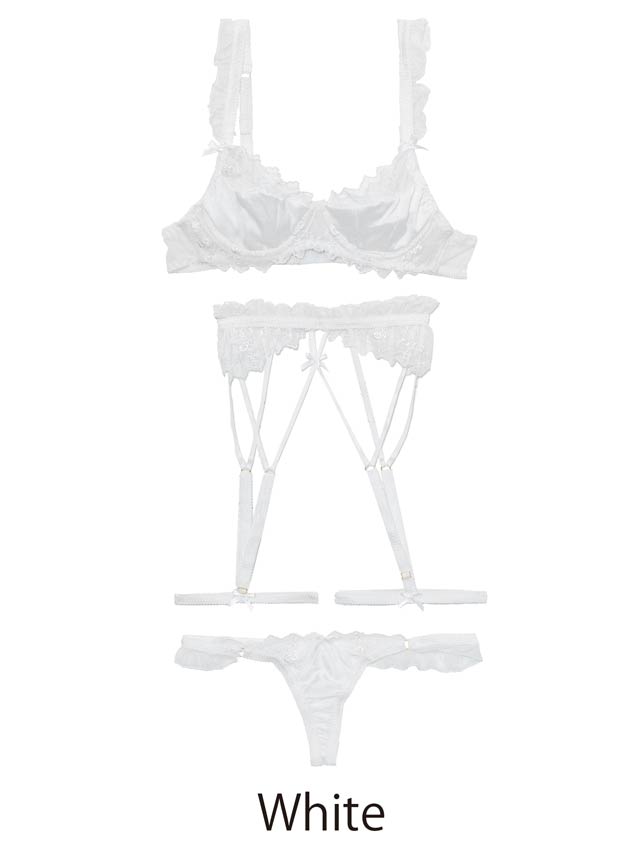 2/6新作![CARRIEFRANCA]ヌーディレースガーターベルト付きブラセット[大人気]