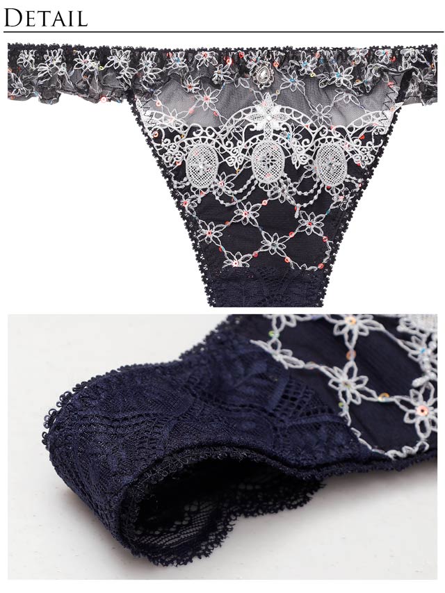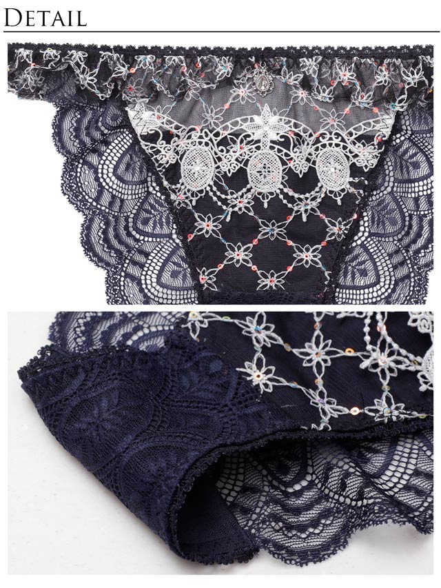 ダスティブルームエンブロイダリー育乳脇高ブラジャー&バック透けフルバックショーツ