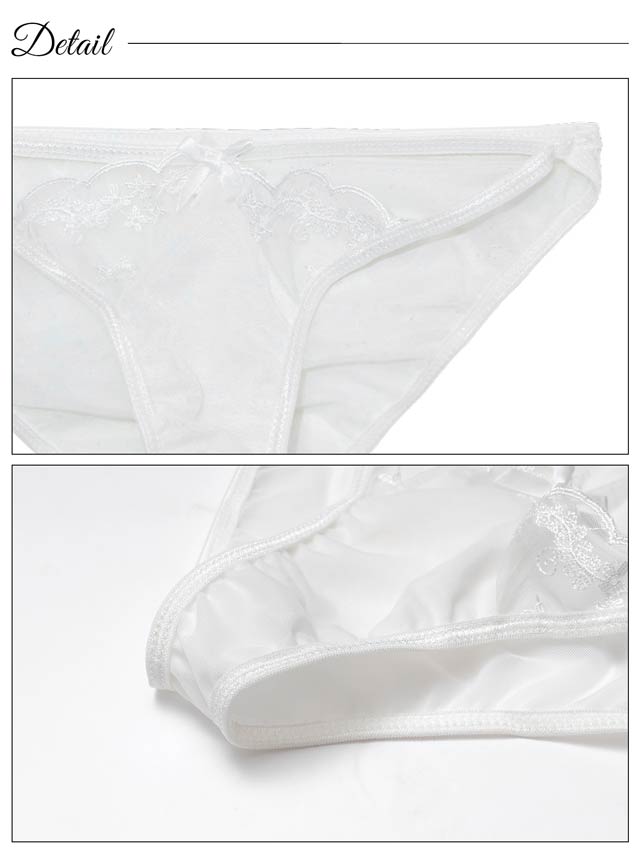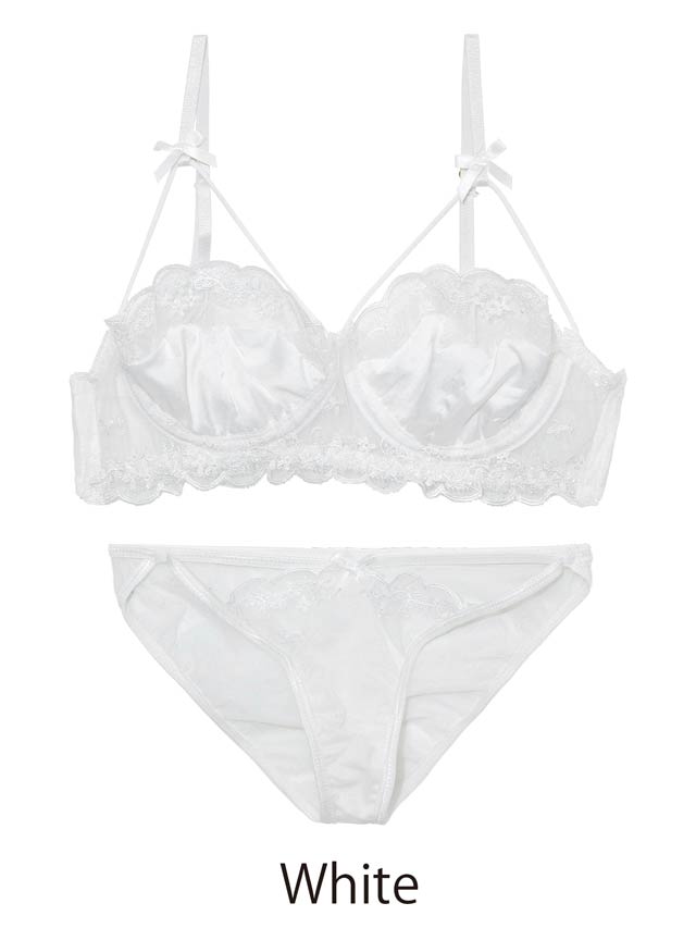 オールレースカットストリング育乳脇高ブラジャー&バック透けフルバックショーツ