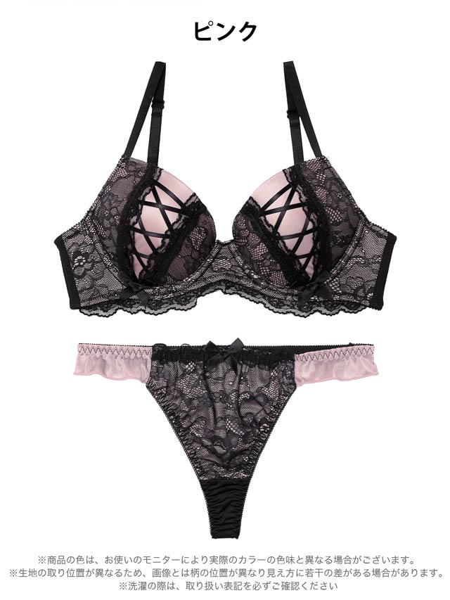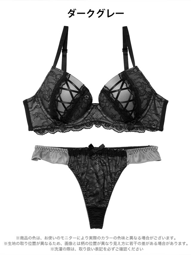 3/27新作!ダークガーリーレースアップブラジャー&Tバックショーツ[激売れ]
