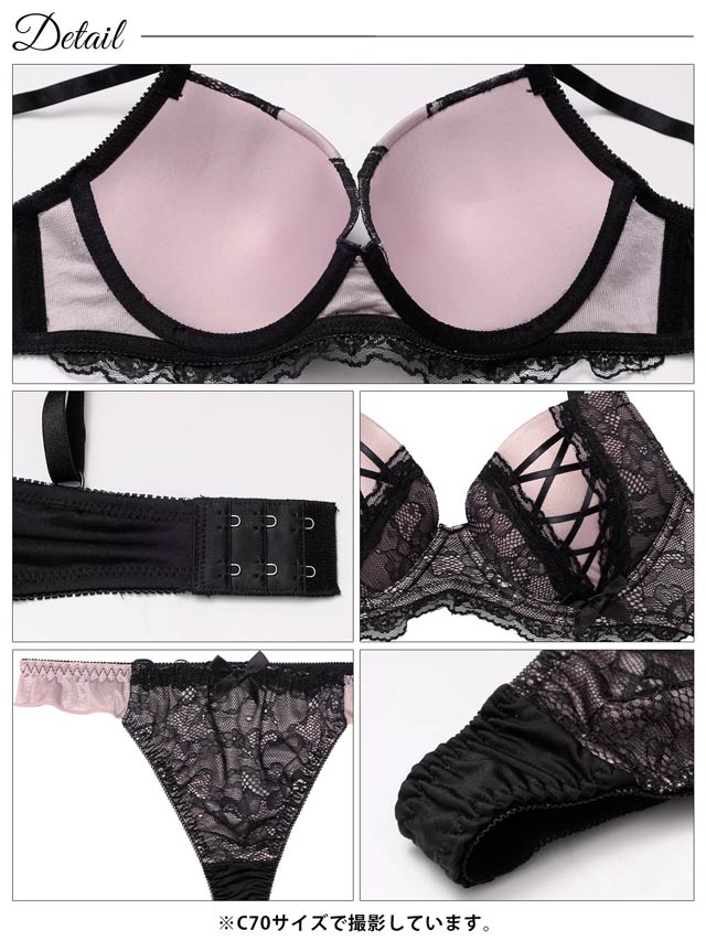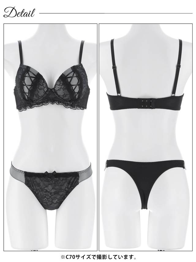 オールレースカットストリング育乳脇高ブラジャー&バック透けフルバックショーツ