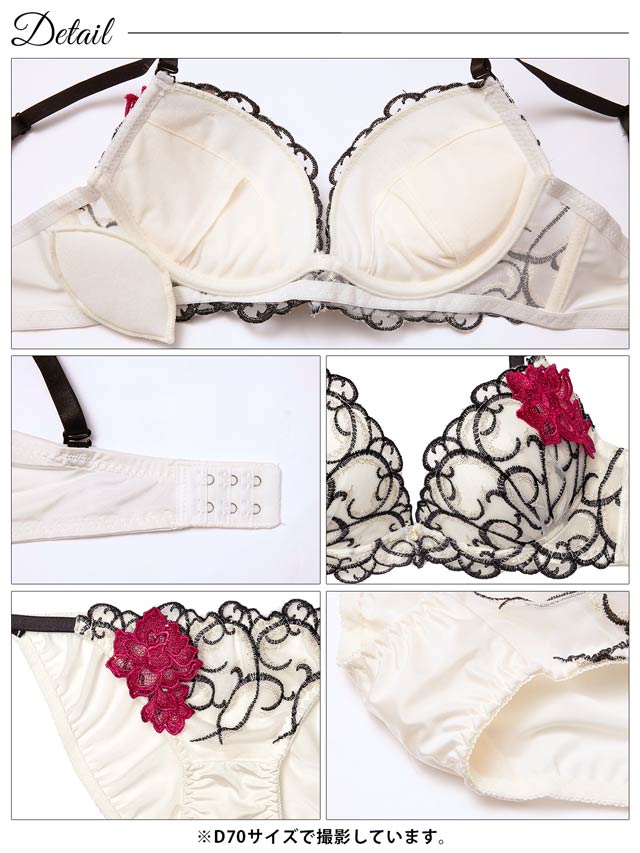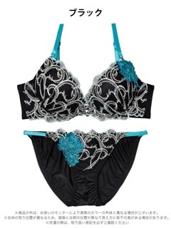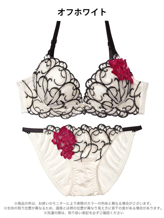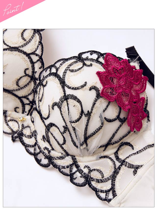 グロッシィフラワーエンブロイダリー育乳脇高ブラジャー&フルバックショーツ