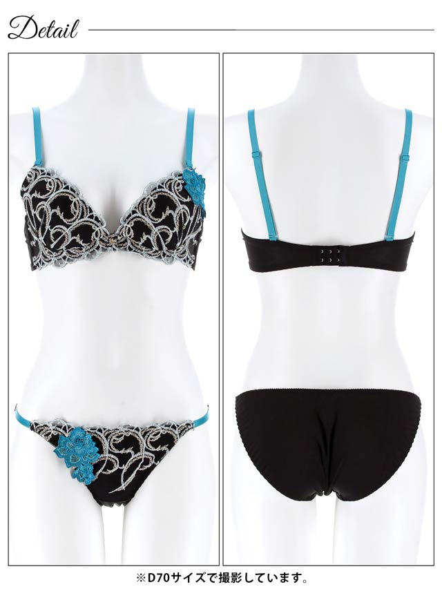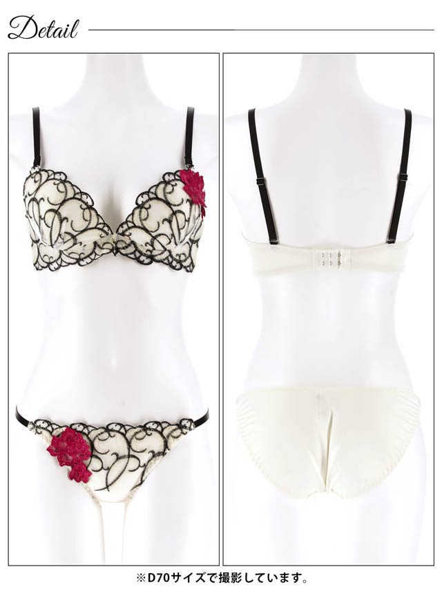 グロッシィフラワーエンブロイダリー育乳脇高ブラジャー&Tバックショーツ