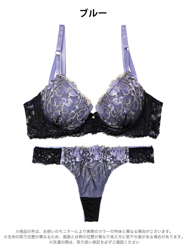 ゴージャスフラワーパール育乳脇高ブラジャー&フルバックショーツ