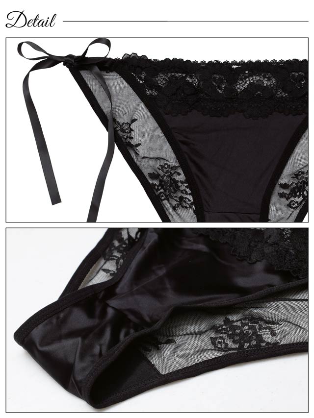 オールレースカットストリング育乳脇高ブラジャー&バック透けフルバックショーツ