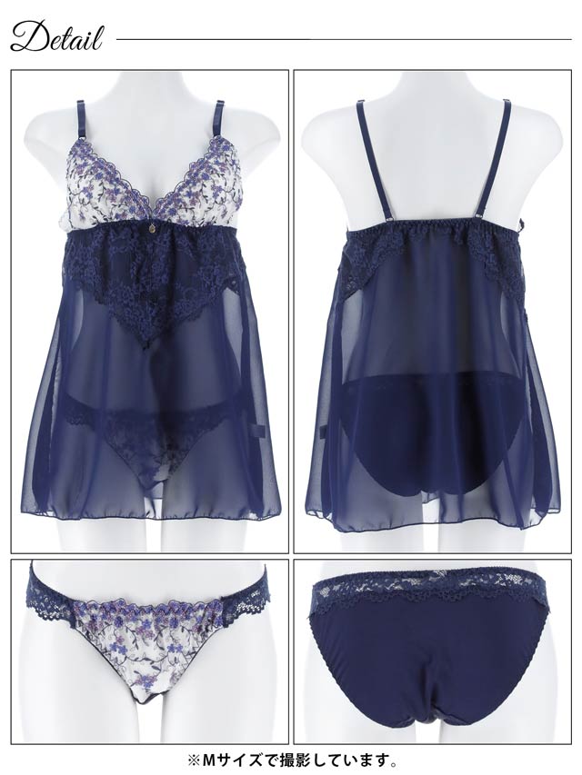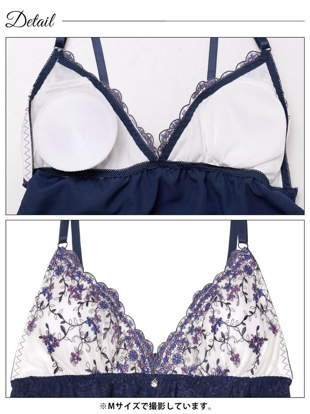 フローラルミューズ育乳脇高ブラジャー&バック透けフルバックショーツ