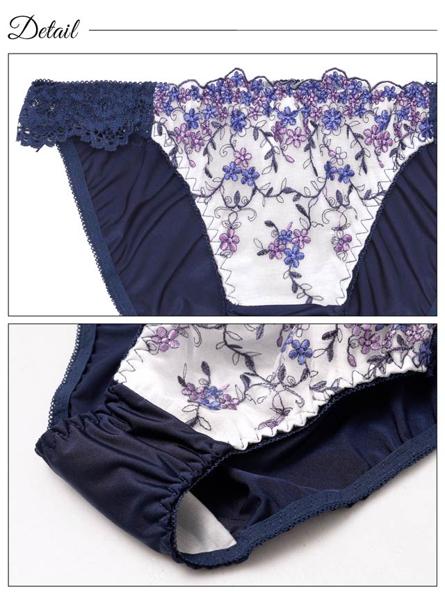 ダスティサテンレース育乳脇高ブラジャー&フルバックショーツ