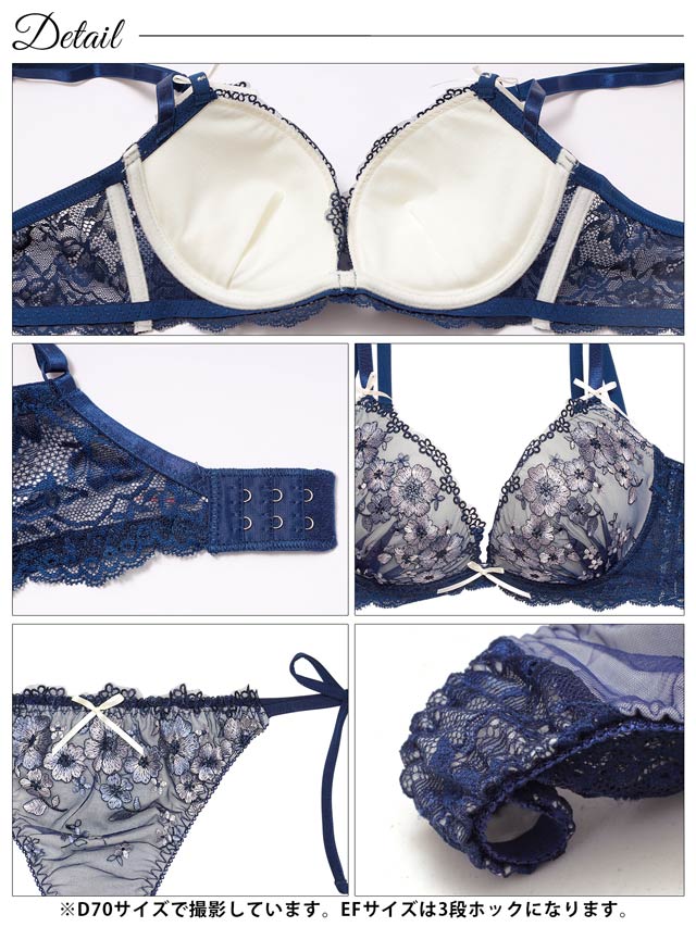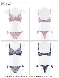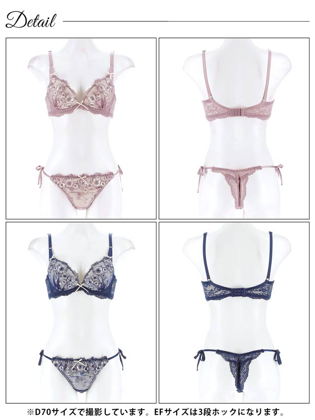 4/1再販!【EFサイズ】ダスティジュエルフラワー育乳脇高ブラジャー&サイド紐バック透けTバックショーツ[大人気]