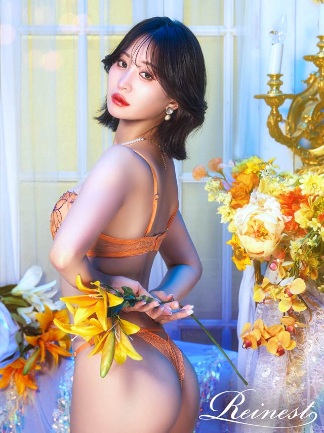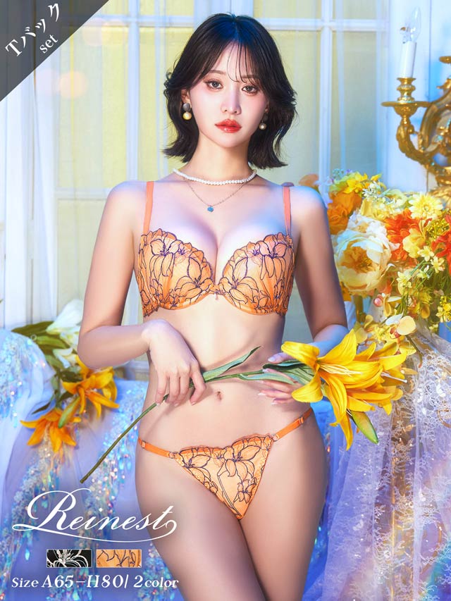 4/1新作!【永尾まりや着用】【Reinest】グラマラスビビッドブロッサムブラジャー&バック透けTバックショーツ[大人気]