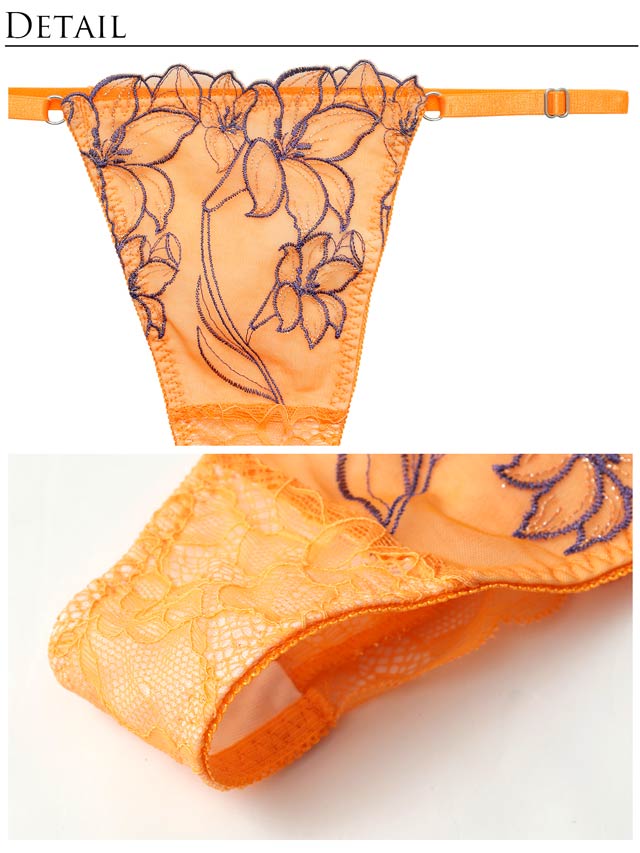 オールレースカットストリング育乳脇高ブラジャー&バック透けフルバックショーツ
