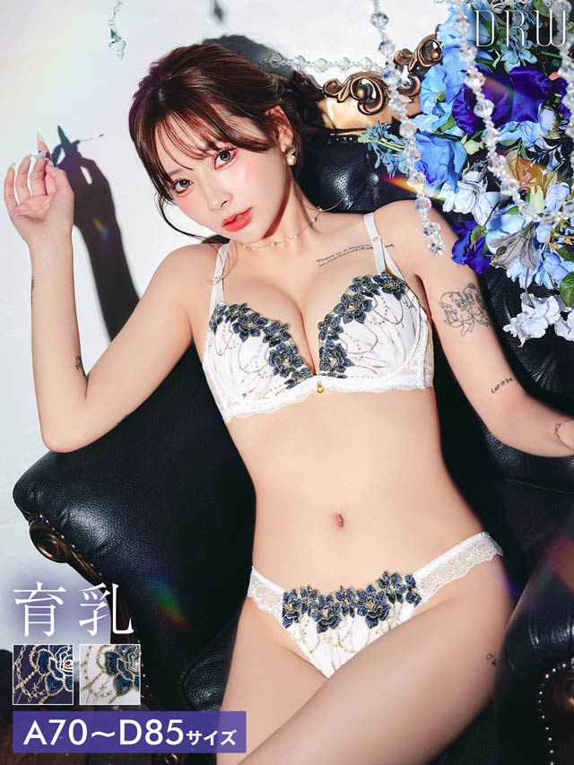 3/30新作!【三上悠亜着用】エレガントアシンメトリーブロッサムブラジャー&フルバックショーツ[激売れ]