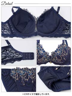 ゴージャスフラワーパール育乳脇高ブラジャー&フルバックショーツ