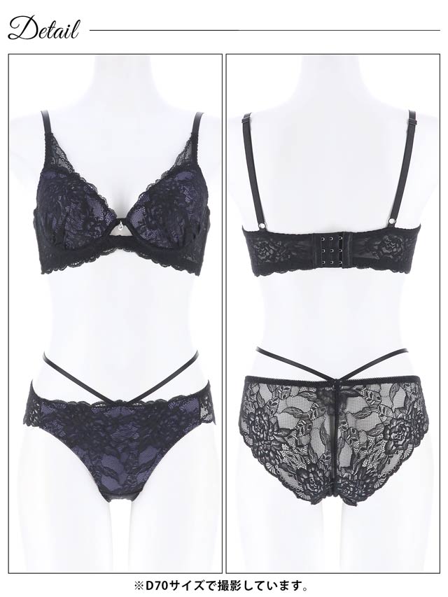 ダスティブルームエンブロイダリー育乳脇高ブラジャー&バック透けフルバックショーツ