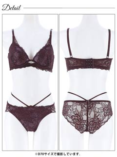 4/10再販!オールレースカットストリング育乳脇高ブラジャー&バック透けフルバックショーツ[激売れ]