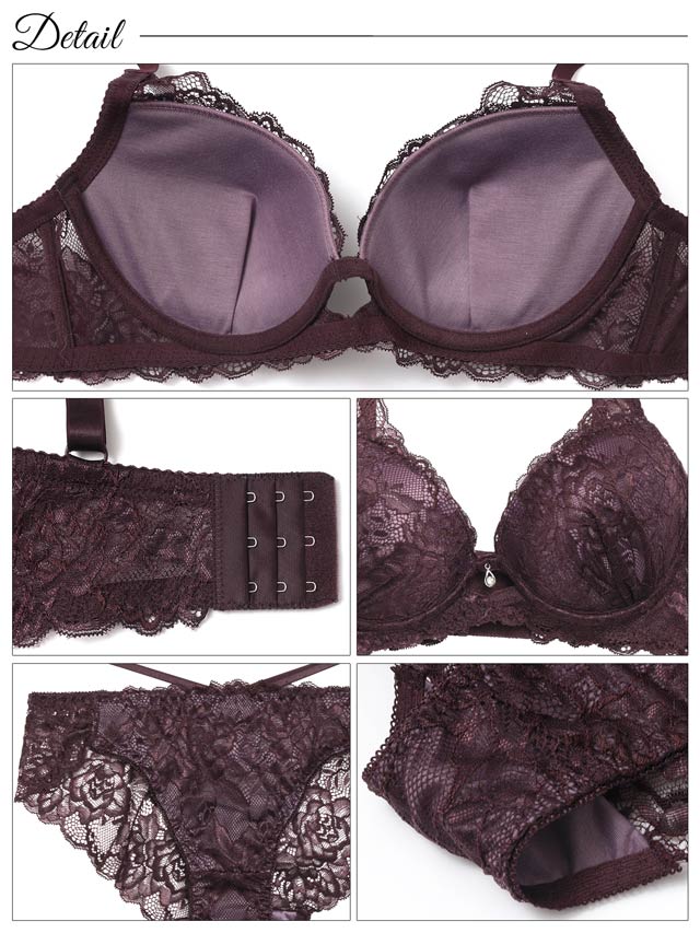 ダスティサテンレース育乳脇高ブラジャー&フルバックショーツ