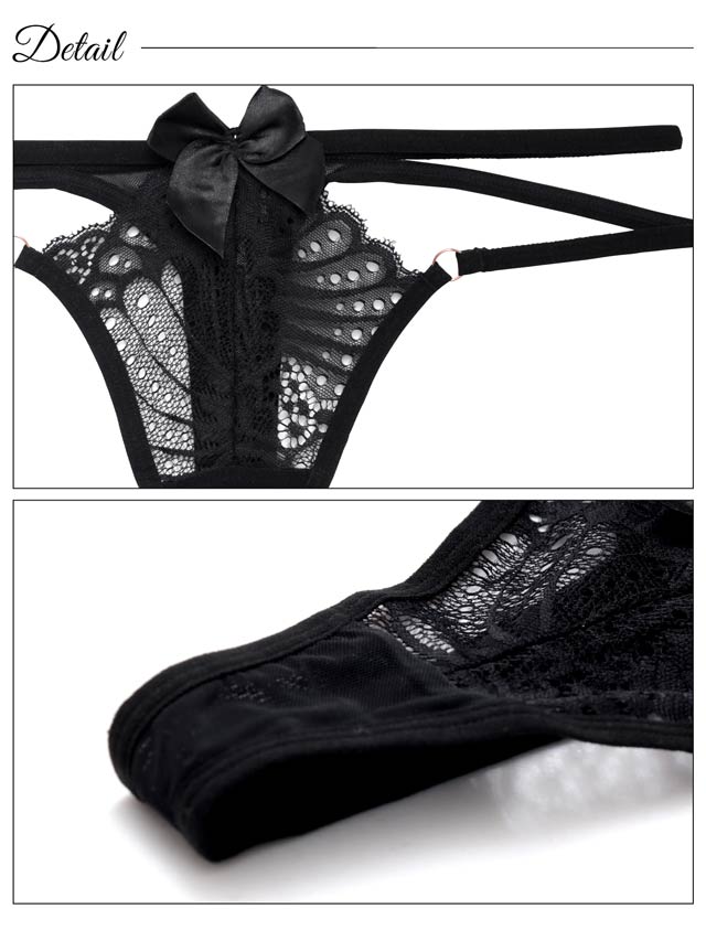 オールレースカットストリング育乳脇高ブラジャー&バック透けフルバックショーツ