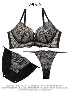 大判フラワー総レース育乳脇高ブラジャー&バック透けフルバックショーツ