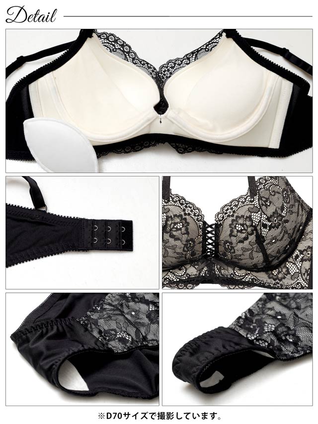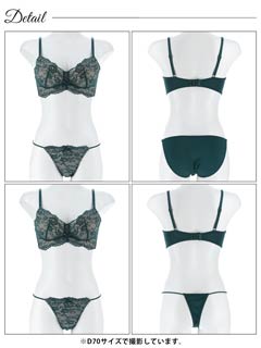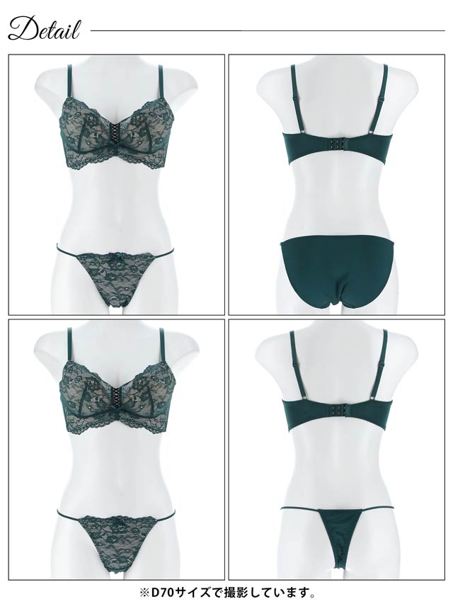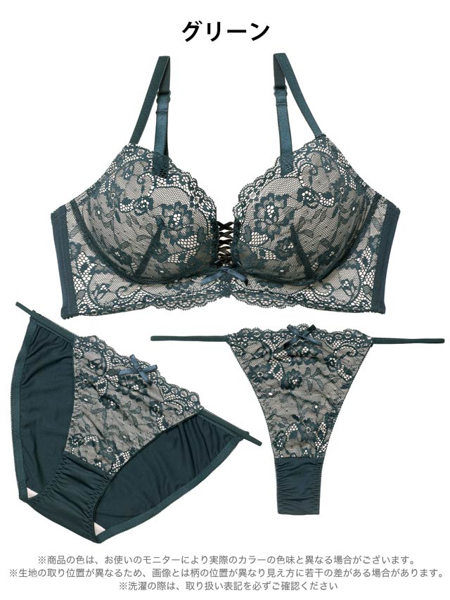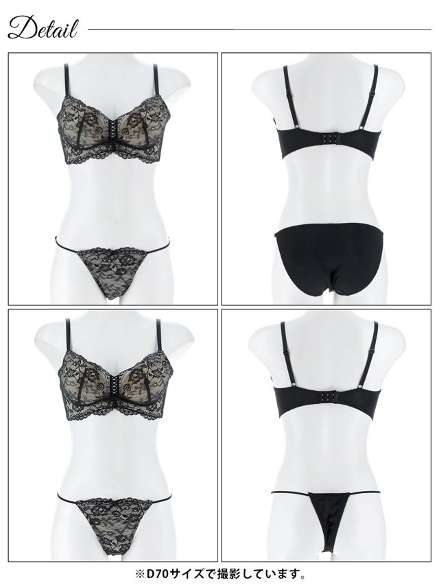 オールレースカットストリング育乳脇高ブラジャー&バック透けフルバックショーツ